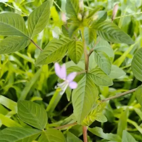 醉蝶花是一年生强壮草本植物,高1-1.5米,全株被粘质腺毛,有特殊臭味,有托叶刺,刺长达4毫米,尖利,外弯。叶为具5-7小叶的掌状复叶,小叶草质,椭圆状披针形或倒披针形,中央小叶盛大,长6-8厘米,宽1.5-2.5厘米,最外侧的最小,长约2厘米,宽约5毫米,基部锲形,狭延成小叶柄,与叶柄相联接处稍呈蹼状,顶端渐狭或急尖,有短尖头,两面被毛,背面中脉有时也在侧脉上常有刺,侧脉10-15对;叶柄长2-8厘米,常有淡黄色皮刺。