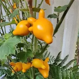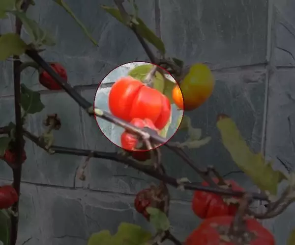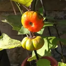 浆果橙黄色或猩红色,圆形,顶基压扁,直径约1.5-2厘米(栽培的可达3.7-4.6厘米),具4-6沟棱,每棱上又往往有1浅沟。种子肾形,淡黄色,直径2-3.5毫米。
