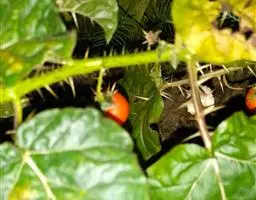 红茄(Solanum integrifolium Poir.),是茄属一年生草本,高约0.7米,茎,叶下面,叶柄及花梗均被5-9分枝有柄或无柄的星状绒毛,小枝黑褐色,毛被初时较密,以后逐渐脱落,具疏稀的浅黄色皮刺,皮刺先端深黄褐色。上部叶常假双生,不相等,叶片卵形至长圆状卵形,先端三角形,渐尖或钝,基部不相等,边缘作不规则的波状深裂,裂片三角形;叶柄长约2-7厘米,具有与中脉相似的皮刺。花序腋外生;花冠白色,略带紫晕,星形或近星状辐形,内面及外面均被星状绒羌,花冠筒长不到1毫米;花丝长约0.6-1毫米,无毛,花药披针状椭圆形;子房近圆球形。浆果橙黄色或猩红色,圆形,顶基压扁,每棱上又往往有1浅沟。种子肾形,淡黄色,直径2-3.5毫米。
