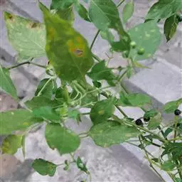 褐纹病:症状:成株下部叶片先受害,叶子出现灰白色水浸状圆形斑点,逐渐变褐色,其上轮上许多小黑点,后期病斑扩大联片,常常造成干裂、穿孔、脱落。茎杆多在基部,病斑扩大,环茎一周时常造成整株死亡,果实受害最严重,产生褐色凹陷圆形斑,上生许多小黑点,排列成轮纹状。