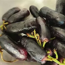 红茄结果期长.必须有充足的肥水供应.如遇连续晴天。园土水分不足,就要及时进行浇灌或沟灌。当果实连续采收2次后,用三元复合肥(浸出液)225kg/hm2左右追肥1次,施于离根基10cm以外处,如施用人粪或化学氮肥,施后大棚要注意通风,以防氨气浓度过高而伤害植株。茄子进入采收高峰期,需肥量很大,除适当增加追肥用量外,每隔5d左右,用0.2%一0.3%的尿素加磷酸二氢钾于傍晚时进行根外施肥,并做到及时补水,以利果实生长。由于多数茄子,在生长中后期常有生理缺素症出现,主要是缺镁、硼等微量元素,一般用硫酸镁、硼砂等微肥进行矫治。