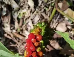 浆果干时黄绿色,倒卵圆形,长3-4毫米,顶部宽3-5毫米,种子3,卵形或倒卵形,浅黄色,长2-2.5毫米。花期5-6月,果期7-10月。