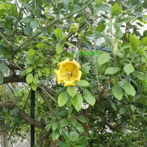 花型巨硕,直径有18—20cm,杯体长约20cm;有牛皮的质地,花金黄色。