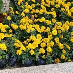 万寿菊是菊科万寿菊属一年生草本植物,别名孔雀菊、缎子花、臭菊花、西番菊、红黄草、小万寿菊、臭芙蓉、孔雀草。万寿菊茎近基部分枝。叶羽状分裂,长5-10厘米,宽4-8厘米,裂片长椭圆形或披针形,具锐齿,上部叶裂片齿端有长细芒,叶缘有少数腺体。头状花序单生,径5-8厘米,花序梗顶端棍棒状。总苞长1.8-2厘米,径1-1.5厘米,杯状,顶端具尖齿。舌状花黄或暗橙黄色,长2.9厘米,舌片倒卵形,长1.4厘米,基部成长爪,先端微弯缺。管状花花冠黄色,长约9毫米,冠檐5齿裂。瘦果线形,被微毛;冠毛有1-2长芒和2-3短而钝鳞片。花期7-9月。万寿菊中国各地均有栽培,在广东和云南南部、东南部已归化,国外原产墨西哥。万寿菊对土壤要求不严,但以肥沃疏松排水良好的土壤为好。耐移栽,种子发芽适温21-24℃,植株生长适合温度为20-29℃。喜温暖和阳光充足的环境,不