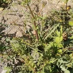 一年或二年生草本,高30-100厘米。茎不分枝或上部分枝,全株被粗刺毛。下部叶长卵圆形,长圆形或匙形,顶端尖或渐尖,基部楔状下延,有三出脉,边缘有细锯齿,有具翅的柄,长8-12厘米;上部叶长圆披针形,顶端渐尖,边缘有细至粗疏锯齿或全缘,无柄或具短柄,长3-5厘米,宽1-1.5厘米,两面被白色密刺毛。