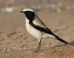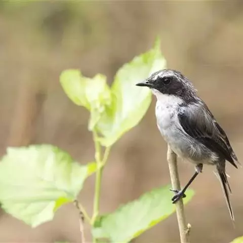 雌雄两性相异。雄性成鸟的头部白色,上体余部及尾黑色;下体赤褐色。雌性成鸟的头、背等均橄榄褐;下体较雄鸟色淡。