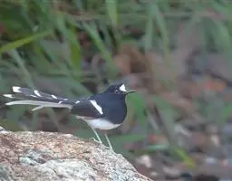 白喉红尾鸲,小型鸟类,体长14-16厘米。雄鸟额至枕钴蓝色,头侧、背、两翅和尾黑色,翅上有一大形白斑,…