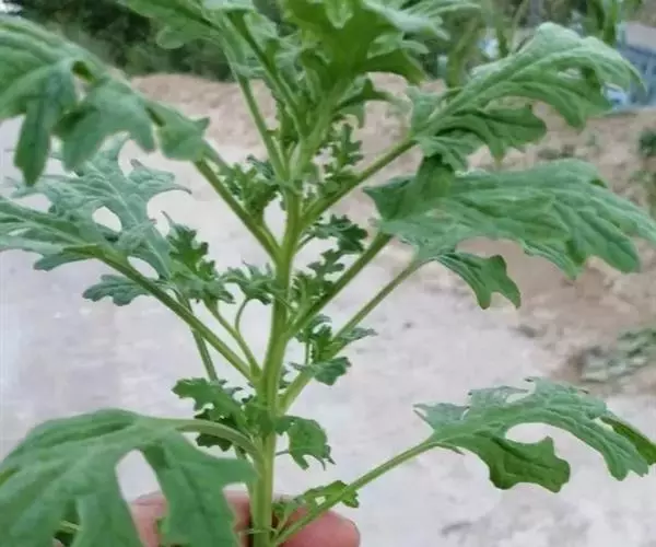 一年生草本,高20-60厘米,有强烈气味,全体有具节的疏生短柔毛。茎直立,具绿色色条,通常有分枝。叶片矩圆形,长2-6厘米,宽1.5-3.5厘米,边缘羽状浅裂至羽状深裂,先端钝或渐尖,有时具短尖头,基部渐狭,上面无毛或幼嫩时稍有毛,下面有具节的短柔毛并兼有黄色无柄的颗粒状腺体,很少近于无毛;叶柄长2-10毫米。