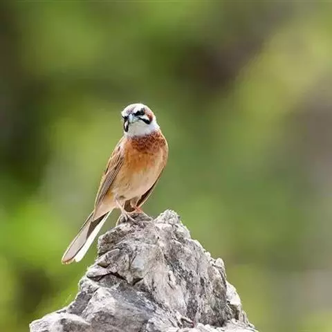 栗斑腹鹀:属小型鸣禽。体重19-25克,体长145-167毫米。头顶至背栗红色,眼先和颧纹黑褐色,…