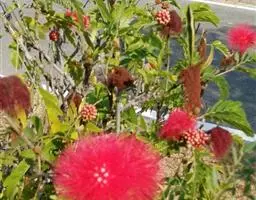 朱缨花,豆科朱缨花属的多年生木本植物,枝条扩展,小枝褐色;叶片呈卵状披针形;头状花序腋生,…