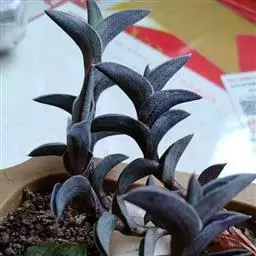 常绿宿根草本,茎匍匐,接地的茎节上生根。叶薄肉质,翠绿色半透明状,具白色纵条纹,有光泽。花白色。
