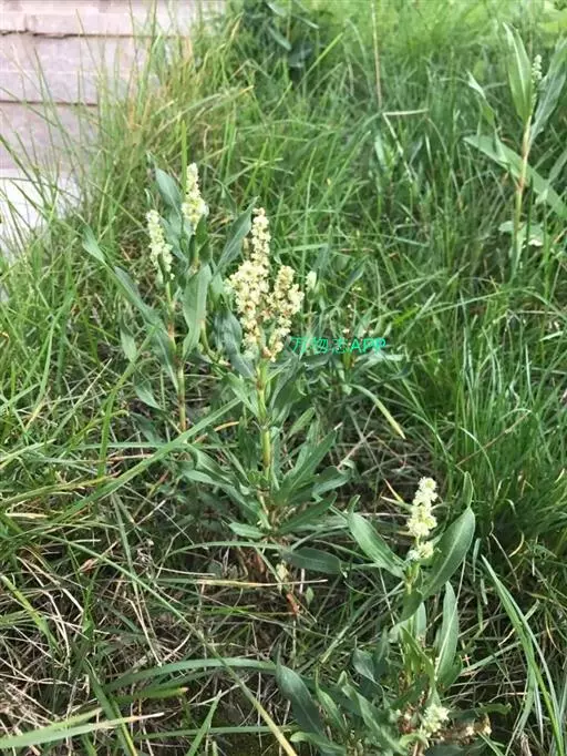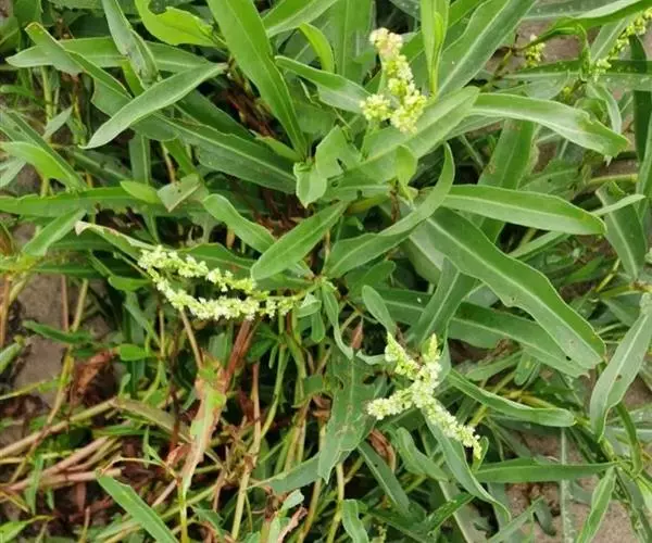 多年生草本,高6-20cm。有细长的根茎。茎斜上或近直立,通常自基部分枝。叶互生,有短柄;叶片稍肥厚,近肉质,披针形或长椭圆形,无毛,长5-8cm,宽5-15mm,先端急尖或钝,基部戟形或楔形。花序圆锥状,顶生,长3-5cm;苞片漏斗状;花梗中上部有关节;花黄绿色,有短梗;花被5深裂,裂片长圆形,长约3mm;雄蕊7-8;花柱3,甚短,柱头头状。瘦果椭圆形,有3棱,黑色,平滑,有光泽。花、果期秋季。