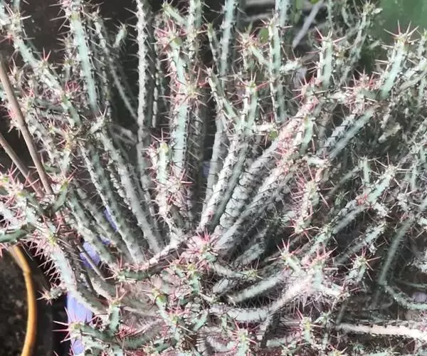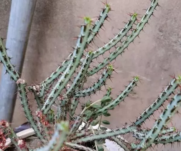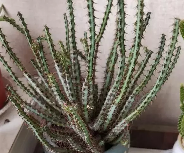 小乔木,高2~6米,直径10~25厘米,老时呈灰色或淡灰色,幼时绿色,上部平展或分枝;小枝肉质光棍…