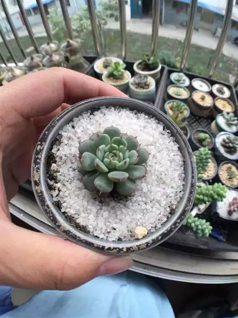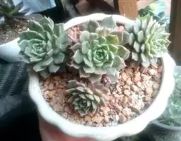 大和锦是景天科拟石莲花属的多肉植物。肉质叶排成紧密的莲座状,广卵形至散三角卵形,背面突起呈龙骨状,…