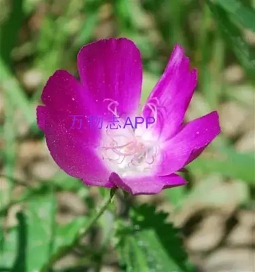 多年生草本,具白色粗壮主根。匍匐茎长达60~90cm,株高15至20厘米,匍匐茎长达50至90厘米。有毛。单叶互生,5~7深裂。花径6cm,紫红色,花期夏季。花瓣5枚,玫瑰红色,花心白色,花期7至8月,果期9至10月。