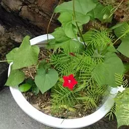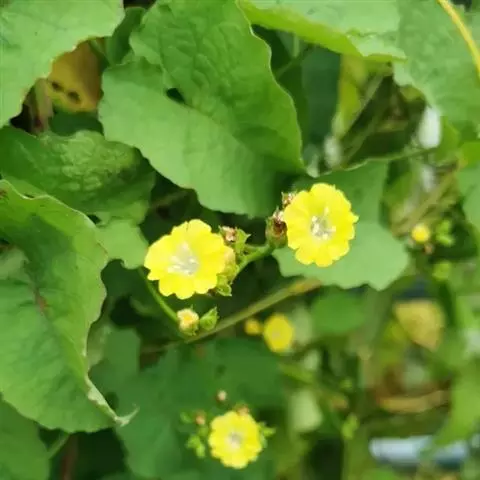 与蓝花土瓜区别在于叶扁菱形至卵圆形,花淡红色至白色。