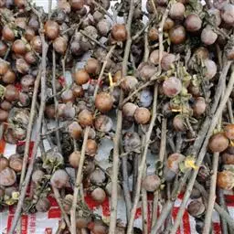 果梗常2-3枚(少有单生)生于叶腋,其中一枚果梗(实为总梗)常有2果(少有多至具4果),其它的具1果,无毛或被短柔毛,长7-17毫米;果成熟时黄色至橙黄色,近球形,直径约8毫米;核近球形,直径约5毫米,具4条肋,表面有网孔状凹陷。花期3-4月,果期9-10月。