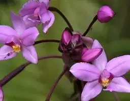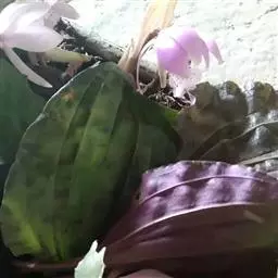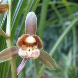 带唇兰:假鳞茎暗紫色,圆柱形,罕为卵状圆锥形,被膜质鞘,顶生1枚叶。叶狭长圆形或椭圆状披针形。…