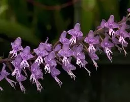 大序隔距兰 Garay):茎直立,扁圆柱形,伸长,达20余厘米,通常粗5-8毫米,被叶鞘所包,…