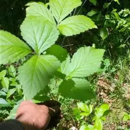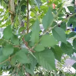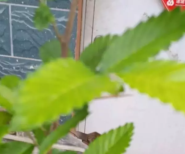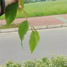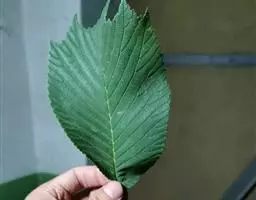 叶椭圆形或椭圆状矩圆形,稀倒卵状椭圆形,长4-7厘米,宽1.5-3厘米,先端急尖或钝圆,基部浅心形或圆形,边缘有整齐的粗锯齿,叶面绿色,幼时被毛,后脱落残留有稍隆起的圆点,叶背淡绿,光滑无毛,或在脉上有稀疏的柔毛,侧脉8-12对,排列整齐,斜直出至齿尖;叶柄短,长3-5毫米,被短柔毛;托叶矩圆形、长矩圆形或披针形,长3-4毫米,淡绿色,边缘具睫毛。
