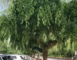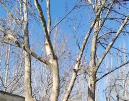 树皮暗灰色,粗糙,不规则纵裂。幼树枝条直立,且被白色毛;老树枝条先端下垂,有时木栓质发达成为瘤状。…