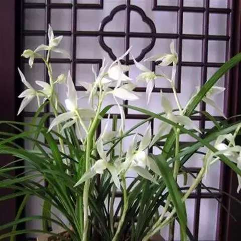 建兰素花,绿白色,清香,一枝开花5至12朵。叶色钢青,细而挺拔,有铮铮铁骨之相,所以叫铁骨素。在日…