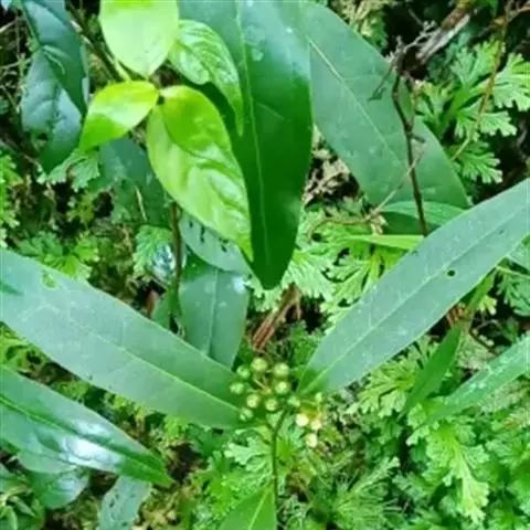 乔木或灌木,高2-8米。叶片厚纸质或革质,密生粗大半透明红棕色腺点(在较薄的叶片才可以见到),叶形变异很大,不分裂叶片通常为椭圆形,稀长圆状椭圆形、椭圆状披针形、披针形或线状披针形,长7-10厘米,宽1.5-4.5厘米,有时更大,先端渐尖,基部钝形或楔形,分裂叶片倒三角形,掌状2-3深裂或浅裂,稀5裂,两面均无毛,边缘全缘,或近先端处有不明显细齿一至数个,或有明显疏离的牙齿,基脉三出,侧脉4-6对,网脉两面显著且隆起,有时上面稍下陷,有时下面较不明显;叶柄长0.5-5厘米,无毛。