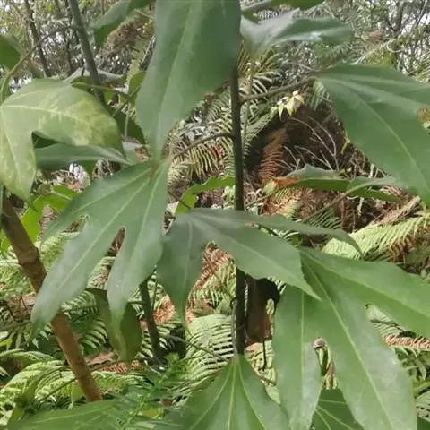 树参(学名:Dendropanax dentiger (Harms) Merr.)是五加科,树参属乔木或灌木,高可达8米。叶片厚纸质或革质,叶形变异很大,不分裂叶片,先端渐尖,分裂叶片倒三角形,两面均无毛,基脉三出,叶柄无毛。伞形花序顶生,有花,总花梗粗壮,苞片卵形,小苞片三角形,宿存;花瓣三角形或卵状三角形,果实长圆状球形,稀近球形,8-10月开花,10-12月结果。
