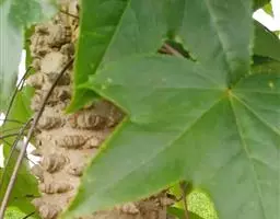 播种方法:树参种子千粒质量为10克,每亩用种量2千克,采用15厘米间距条播或撒播。复土厚度为种子直径的2-3倍,因地形宜选用谷皮、木屑等均匀覆盖。为了达到增温保湿效果,可采用搭盖塑料小拱棚。