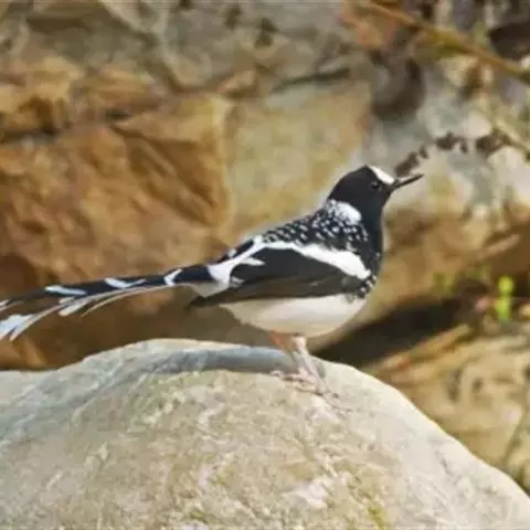 白喉红尾鸲,小型鸟类,体长14-16厘米。雄鸟额至枕钴蓝色,头侧、背、两翅和尾黑色,翅上有一大形白斑,…
