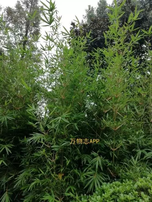 形态特征:多年生竹类,地下茎匍匐,秆高约3m,直径1~l.5m,箨甚长,简期几抱没节间,外表粗糙,具刺毛,不易脱落,节间lO~20cm,上端节上着生细枝,3出或多数,亦具有箨或无箨,叶舌片黑褐色,密生毛茸,假叶长卵形,锐尖头,叶粗革质,平行脉宽2~3m,1小枝叶约l~3枚。叶柄扁平,叶片披针形革质,叶背带粉色,密生短刚毛,尤以渐尖锐尖,楔脚或圆脚,长l0~20cm,宽1.5~2cm,极少开花。