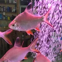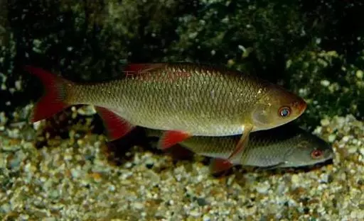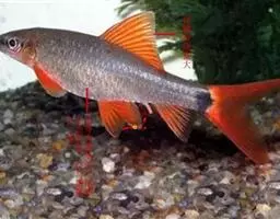 腹腔膜灰白色,带有小黑点。生活时背部灰绿色,体侧银白色,腹部白色。背鳍和尾鳍的上叶灰绿色,腹鳍、臀鳍和尾鳍的下叶鲜红色,胸鳍灰黄色。