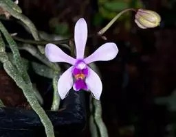 长叶山兰:假鳞茎椭圆形至近球形,有2-3节,外被撕裂成纤维状的鞘。叶2枚,偶有1枚,生于假鳞茎顶端…