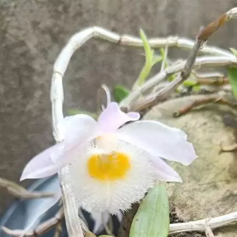 杓唇石斛 Sw.):茎粗状,质地较硬,直立,圆柱形,不分枝,具多节。叶革质,二列;互生于茎的上部,…