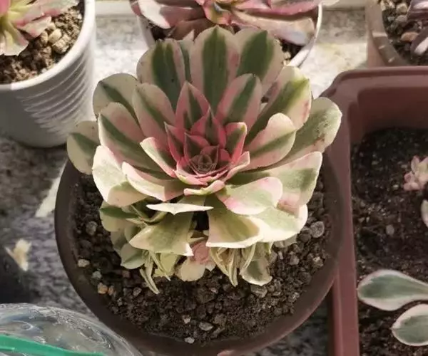 清盛锦别名艳日辉、夕映,为景天科莲花掌属多年生常绿肉质植物。原生地位于大西洋加那利群岛。 植株呈…
