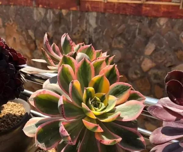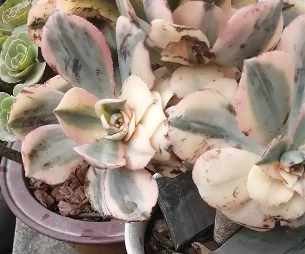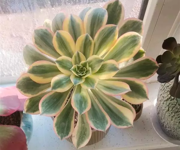 红缘莲花掌属蔷薇目、景天科植物,原产大西洋的加那利群岛。质厚,蓝绿色,被白霜,叶缘红褐色。聚伞花序,…