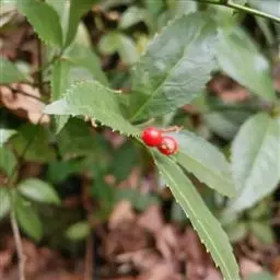草珊瑚,学名:Sarcandra glabra (Thunb.) Nakai,为金粟兰科多年生常绿亚灌木,俗称满山香、观音茶、九节花、接骨木等。其形态秀丽、四季馨香,具有极高的药用、食用及观赏价值。