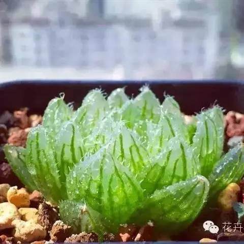 条纹十二卷 Haw.)是芦荟科十二卷属植物,为多年生肉质草本植物。植株高度10-15厘米,其呈莲座…