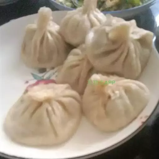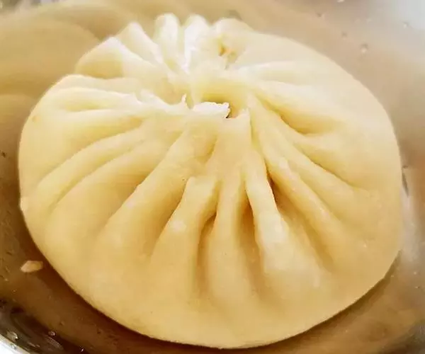5.案板上撒醭面,将面团搓成长条,做成40个面剂,擀成圆形面皮,包入肉馅,顶口捏成菊花顶形状,放入笼内,用旺火蒸15分钟出屉。