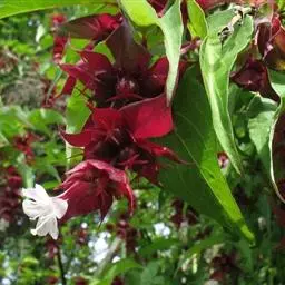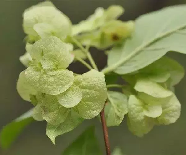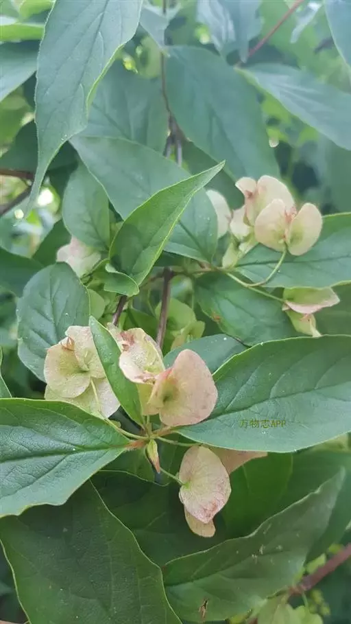 落叶灌木,高达4m;幼枝被柔毛。冬芽具3-4对鳞片。叶椭圆形至宽披针形,长5-10cm,宽2-4cm,顶端渐尖至长渐尖,基部钝圆至近圆形,全缘或稀具疏浅齿,上面疏生微柔毛,主脉下陷,下面沿脉被白色长柔毛,边缘具睫毛;叶柄长约5mm。伞房状聚伞花序生于短枝顶部叶腋;小苞片2对,一对较小,卵形,不等形,另一对较大,肾形;萼檐膜质,被柔毛,裂至2/3处,萼齿钻状条形,不等长,长约4-5mm;花冠白色至粉红色,钟形,长2-4cm,基部一侧有浅囊,二唇形,喉部具柔毛及黄色块状斑纹;花丝无毛;花柱较雄蕊长,不伸出。果实圆卵形,被柔毛,顶端狭长,2对宿存的小苞片明显地增大,其中一对网脉明显,肾形,以其弯曲部分贴生于果实,长2.5-3cm,宽1.5-2cm;种子扁,内面平,外面延生成脊。花期5-6月,果熟期5-11月。