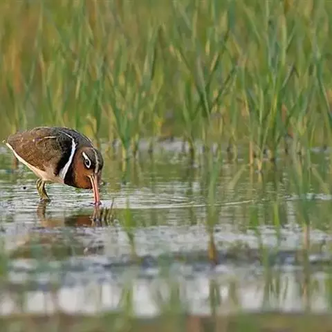 彩鹬栖息于平原、丘陵和山地中的芦苇水塘、沼泽、河渠、河滩草地和水稻田中。