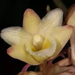 喉红石斛:附生。茎丛生,直立,粗短,近棒状纺锤体。叶2-4枚,生于茎顶。总状花序顶生,花序轴长5-…