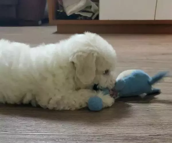 卷毛比熊犬十三世纪前在欧洲就有了,特别受到西班牙人的青睐,十四世纪晚期,西班牙水手在航行中常把它作为交易品,最终在一个名为塔纳瑞夫的岛上聚集了很多犬,这就是后来很有名的比熊犬。这些犬随着意大利水手的交易又到了意大利,在那里他们很快成为意大利贵族们的宠物,并成为欧洲贵族所喜爱的宠物。1500年,当法国入侵意大利时,法国人被比熊犬白绒绒可爱的样子迷住了,并把它作为战利品带回法国。