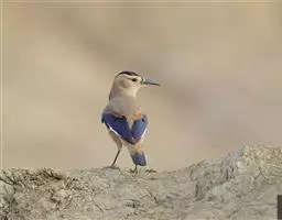 黑尾地鸦:体羽沙褐色,额、头顶以至后颈呈发金属紫蓝辉的黑色。头侧乳黄色。整个背面,包括两肩葡萄褐色。…