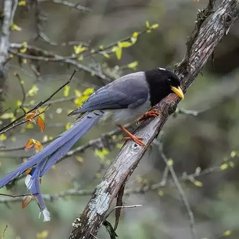 黄嘴蓝鹊是鸦科、蓝鹊属的鸟类。大型鸦类,体长45-69厘米。尾特长,呈凸状,蓝色,…