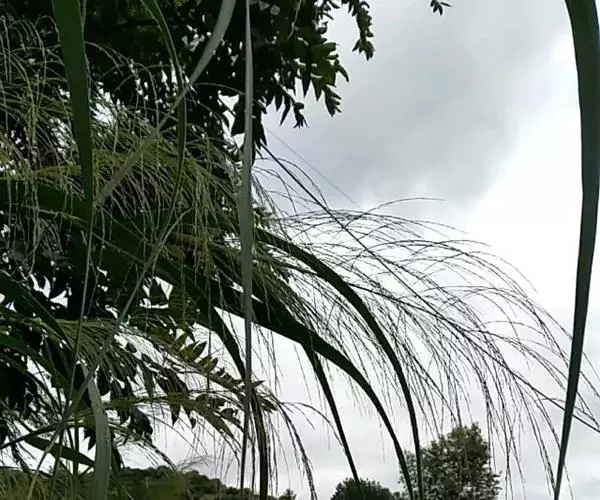 多年生,具木质根状茎,须根粗而坚硬。秆直立,高2-3米,径5-10毫米,通常节具分枝,节间被白粉;叶鞘无毛,仅沿颈部具柔毛;叶舌密生柔毛;叶片长30-60厘米,宽5-10毫米,扁平或卷折,顶端长渐尖,无毛或上面生柔毛。圆锥花序长30-60厘米,分枝细长,开展或下垂;小穗长6-8毫米,含5-8小花,第一外稃不孕,无毛;颖片短小;长2-3毫米;外稃长约4毫米,边脉生有长约2毫米的柔毛,顶端具长1-2毫米向外反曲的短芒;内稃短于外稃。花果期8-12月。染色体2n=20(Kalia1978)。