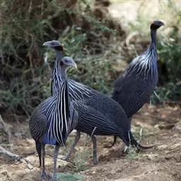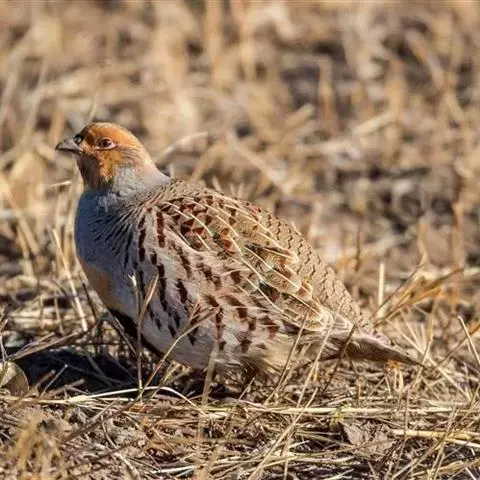体大的灰褐色鹑类。胸灰色具黑色细纹。与相似种类四川雉鹑不同处在于栗色喉块外缘近白。有猩红色眼周裸皮。…