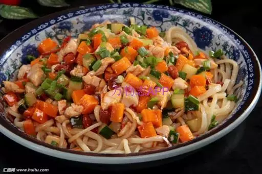 底菜:一般为胡萝卜,切为细小的末状。如果在肉臊子刚出锅,锅中留有适量的臊子中直接炒最好。也可在凉锅中先用适量臊子热锅,再倒入胡萝卜末,同时旺火翻搅,放 入碘盐。半熟时,文火慢慢的焖,同时要勤翻动,一直将锅中的水分焖干,在菜快被焖熟时,放入味精、花椒等调味品。在此中要根据热锅的臊子和菜的比例,控制油和辣味合适。面有传统手擀面和机压面:手擀面,面要做到韧、劲道,沸水出锅有光泽。通常是生面做好,揉团,蒙上湿布放五六个小时后再擀,这样面有韧劲,易于擀薄切细,沸水出锅有光泽,面劲道滑润。机压面多为结婚丧葬等亲朋较多时用,节省人力和时间。