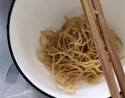 三、在另一锅里下面,等面熟后捞出。给每人尝芫块头的样子后,乘制作好的汤,即可食用。