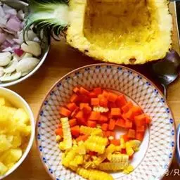 4、切几根红萝卜成小四方块状,还有木耳成小块状,黄花成小段状。